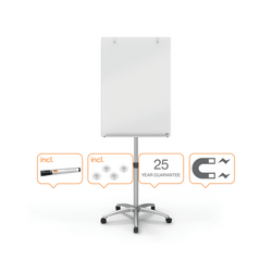 Flipchart mobil NOBO Brilliant, sticla, 100x70 cm, magnetic, include marker, tavita si magneti, alb