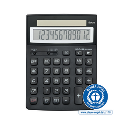 Calculator de birou, 12 digits, MAUL ECO950, din plastic reciclat, incarcare solara - negru