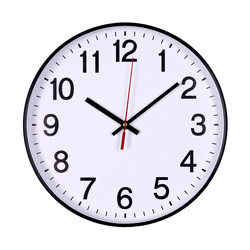 Ceas de perete, 30 cm, cifre arabe, cadran alb, rama plastic neagra, DONAU