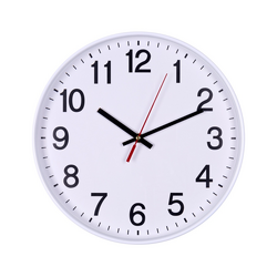 Ceas de perete, 30 cm, cifre arabe, cadran alb, rama plastic alba, DONAU