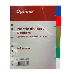 Separatoare plastic color, A4, 120 microni, 6 culori/set, Optima