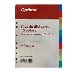 Separatoare plastic color, A4, 120 microni, 10 culori/set, Optima