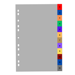 Index plastic color, A4+, extra wide, 120 microni, numeric 1-12, Optima