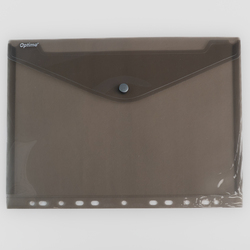 Folie protectie doc. A4, clapa laterala, inchidere cu capsa, 4/set, 200 microni, Optima -fumuriu