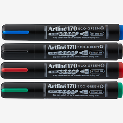 - Permanent marker ARTLINE 170 Eco Green, 4 culori/set, cu varf rotund de 2.0 mm si corp din plastic.