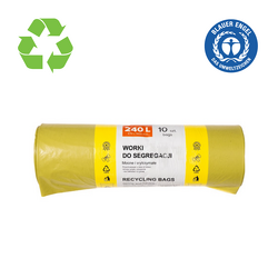 Saci plastic reciclat, standard, 240L, 87x140cm, 27 microni, 10buc/rola, RESACO - galbeni