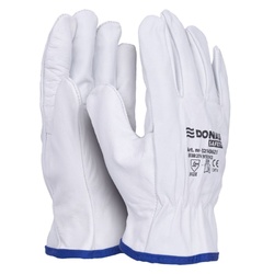 Manusi protectie DONAU, din piele, grip, aratator intarit - marimea 10 - alb cu albastru