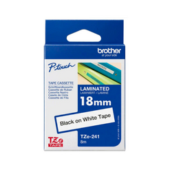 - TZe-241 este o banda laminata de 18mm, text negru pe baza alba, realizata din PET (film poliester). Aceasta banda din seria TZ are un adeziv permanent de calitate, care ofera o aderenta buna pe majoritatea suprafetelor netede, curate de ulei si murdarie. Stratificarea superioara asigura un grad ridicat de protectie al etichetei.