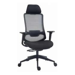 - Scaun de birou ergonomic, rotativ, cu spatar inalt din plasa, sezut si tetiera tapitate cu material textil