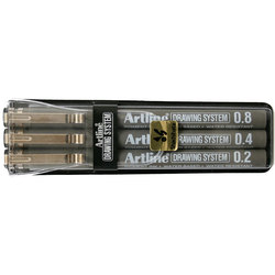 Liner pentru desen tehnic ARTLINE, varf fetru (0.2/0.4/0.8mm), 3 buc/set - negru