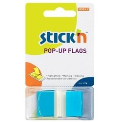 Film index autoadeziv 45 x 25mm, 50 file/set, cu dispenser, Stick"n Pop-up - transparent/albastru