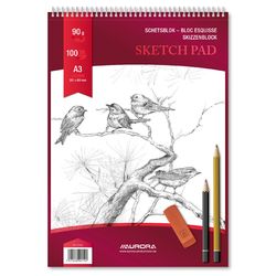 Bloc desen cu spirala, A3, 100 file - 90gsm, pentru schite creion, AURORA Esquisse - hartie alba