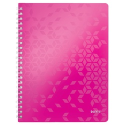 Caiet de birou LEITZ WOW, PP, FSC, reciclabil, A4, 80 coli, cu spira, matematica, roz