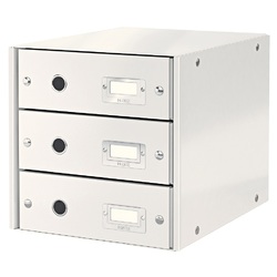 Cabinet cu sertare LEITZ WOW Click & Store, 3 sertare, carton laminat, A4, alb
