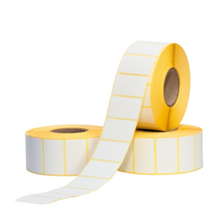 - Role de etichete autocolante pretaiate din hartie termica, compatibile cu imprimante care tiparesc prin transfer termic direct (DT).